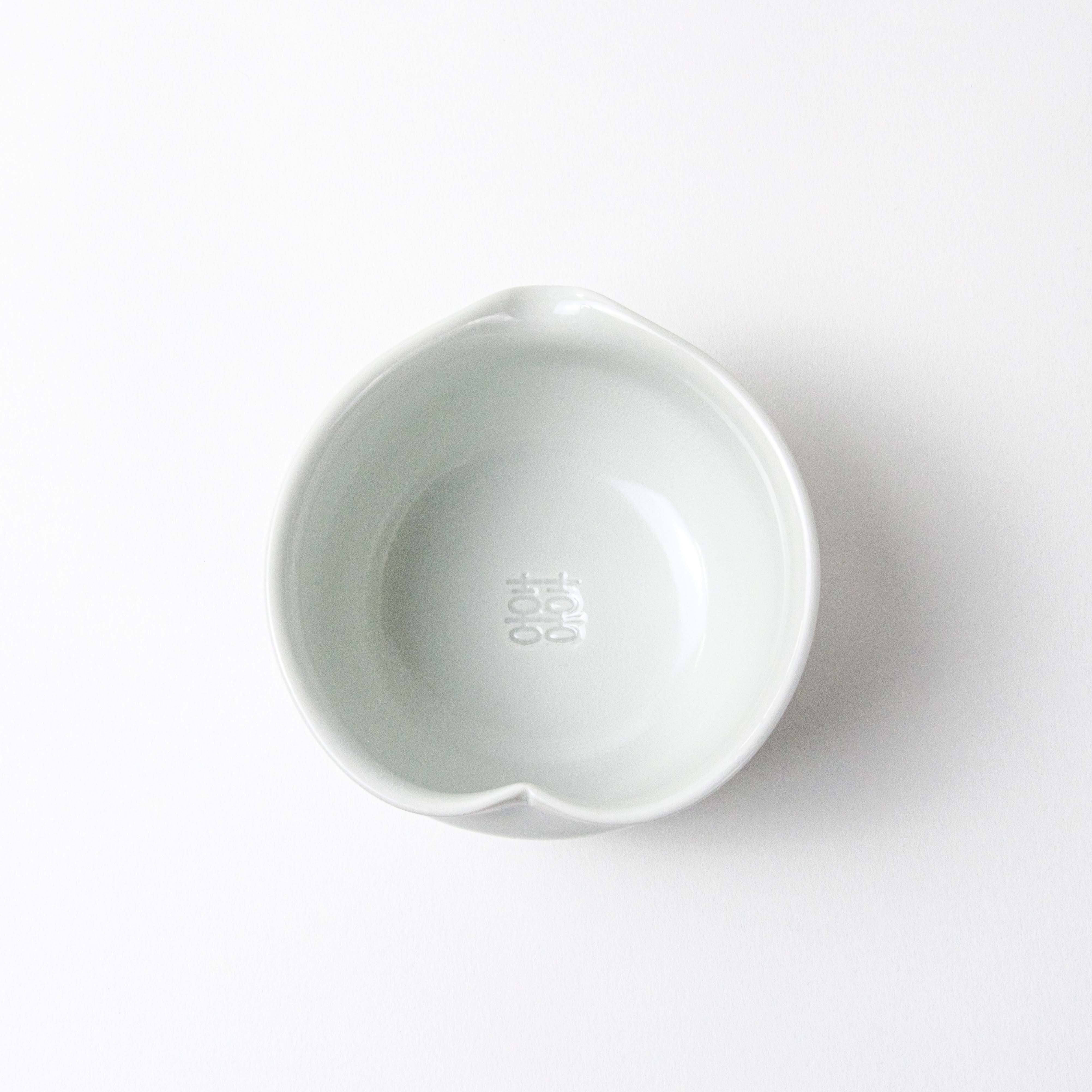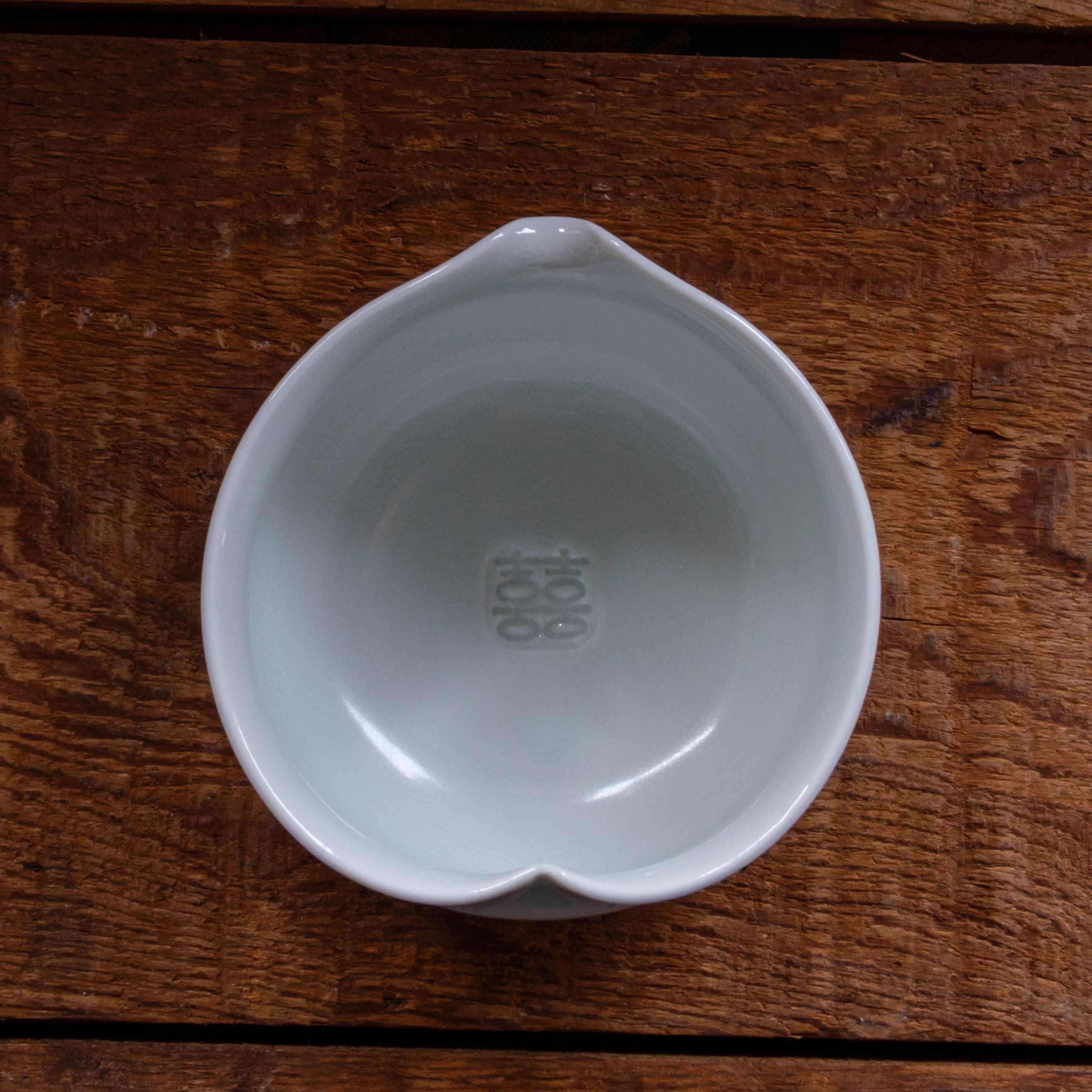 貫入のある柔らかい釉調が美しい轆轤成形による桃型の片口です。見込みに「Nectar」「喜喜」の刻印2種類をご用意しました。