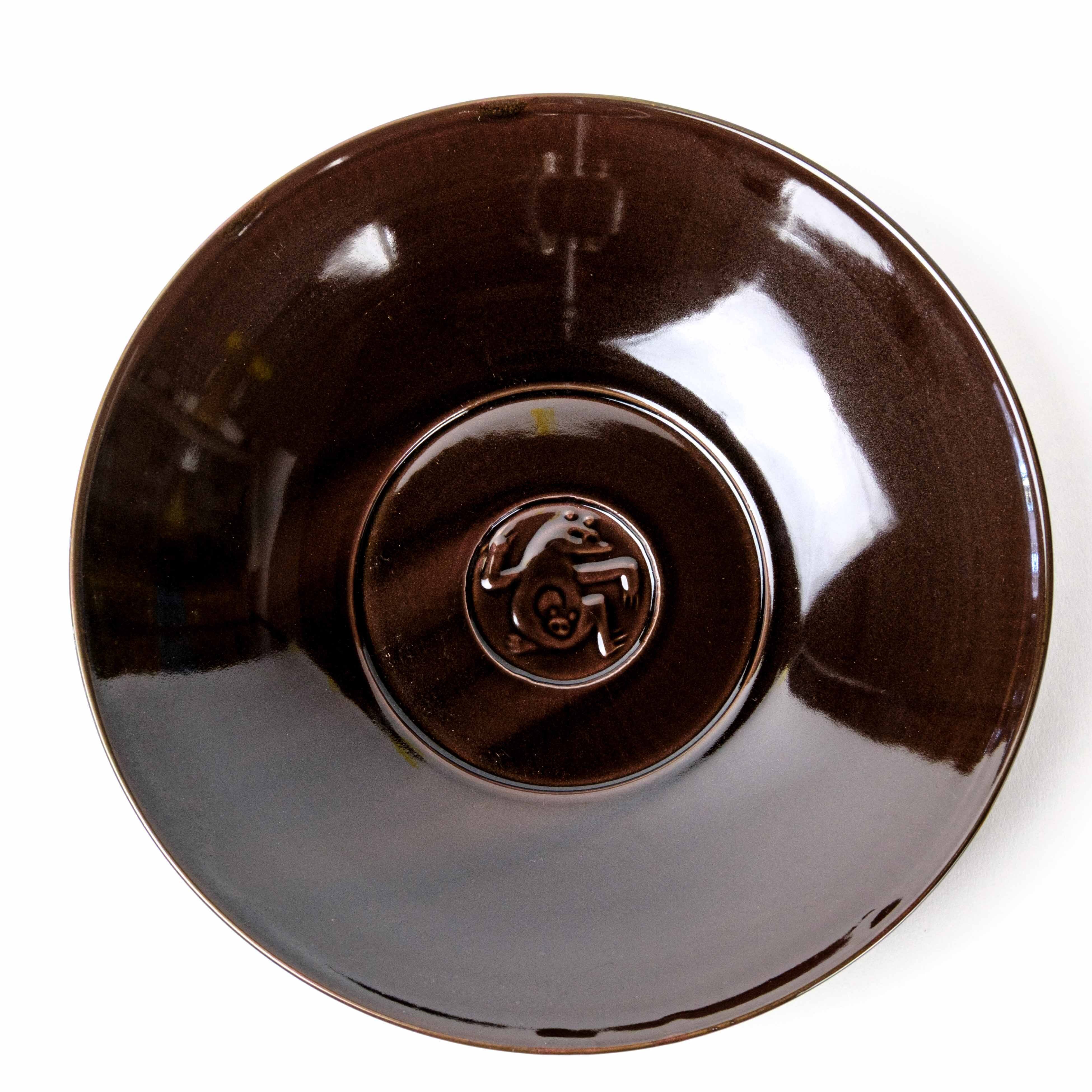 磁器の生産をする上で厄介な存在である鉄を、あえてたくさん添加した釉薬を制作しました。天目とは、鎌倉時代の禅僧が中国の天目山から持ち帰った茶盤に黒い釉薬が施されてあったことがその由来とされています。一般には黒~褐色の鉄釉を天目釉と呼んでいます。