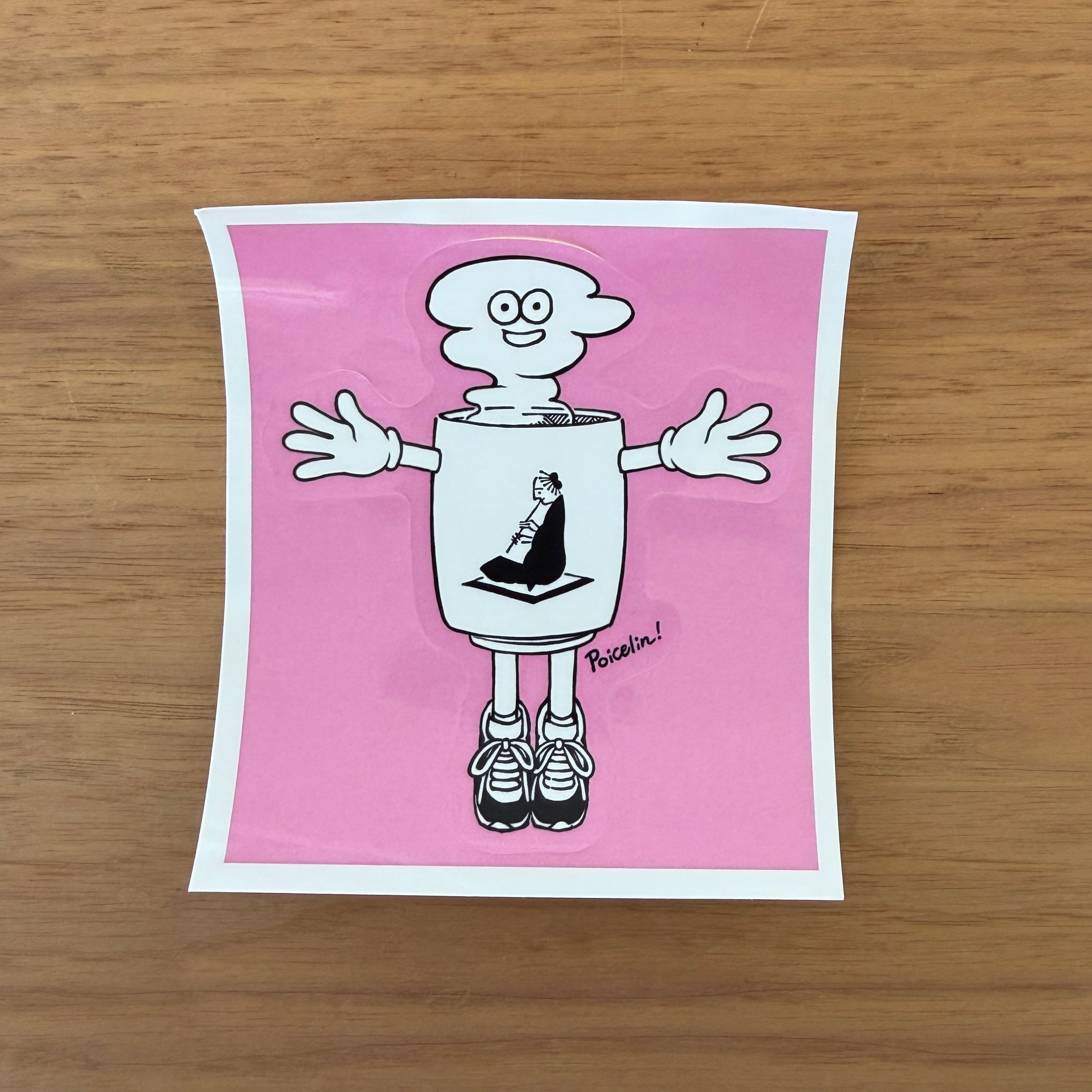 上出長右衛門窯の創業146周年を記念して誕生したキャラクター「ポワセリンくん」です。湯呑から立ち上る湯気はポワポワとすぐにどこかへ消えてしまいます。上出瓷藝がデザインした開化堂150周年記念キャラクター「ブリックくん」のお友達として誕生しました。
