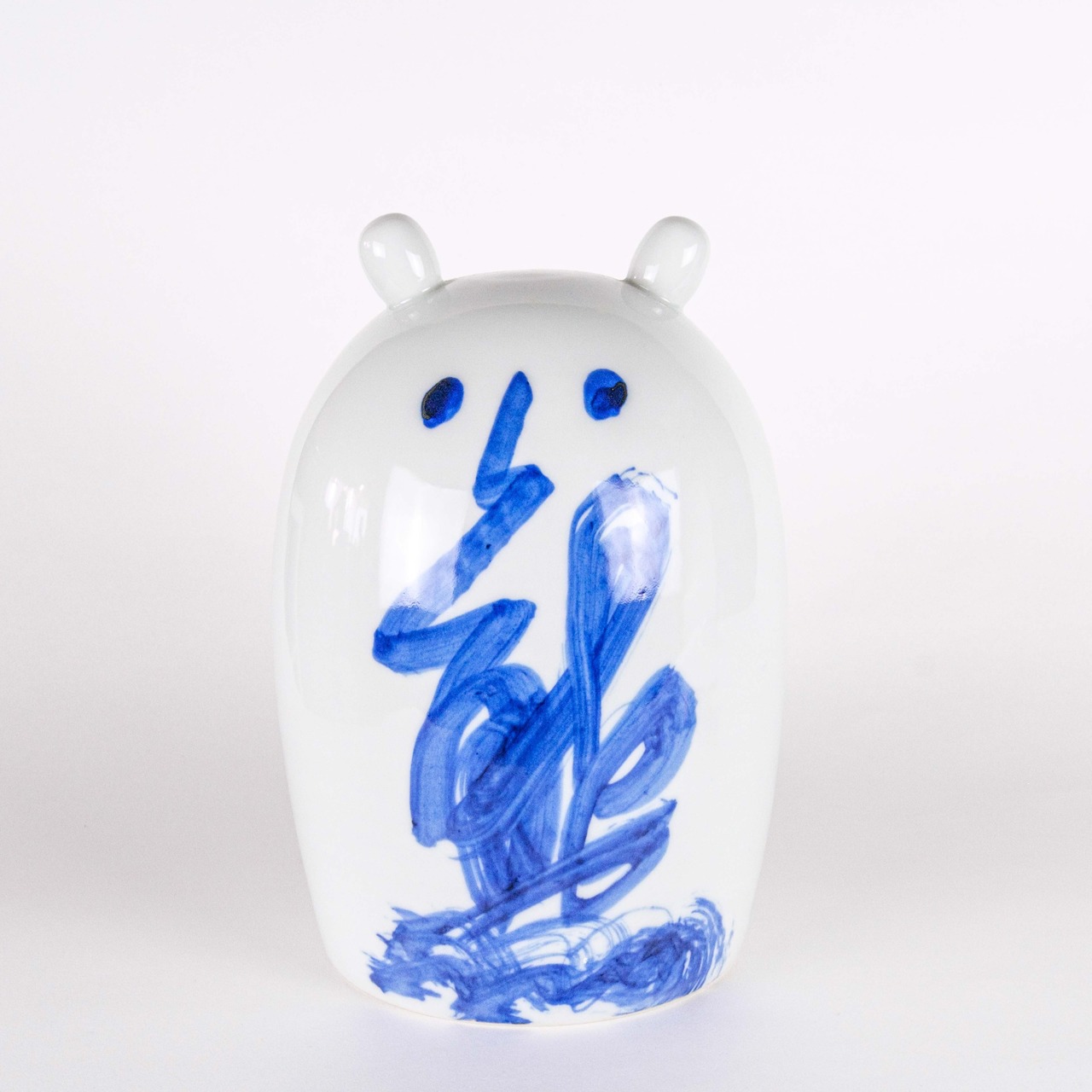 「轆轤と熊のまつり」の象徴する存在である「熊福老(クマブクロウ)」は、轆轤でつくった熊の置物です。ミニミニサイズとは異なり、六代目・上出惠悟が「熊」と絵付した本格仕様の大きなサイズが、このたびオンラインショップに新登場しました(限定2体)!