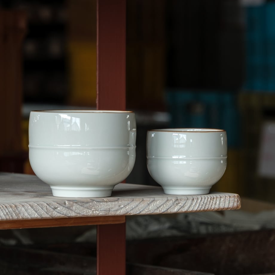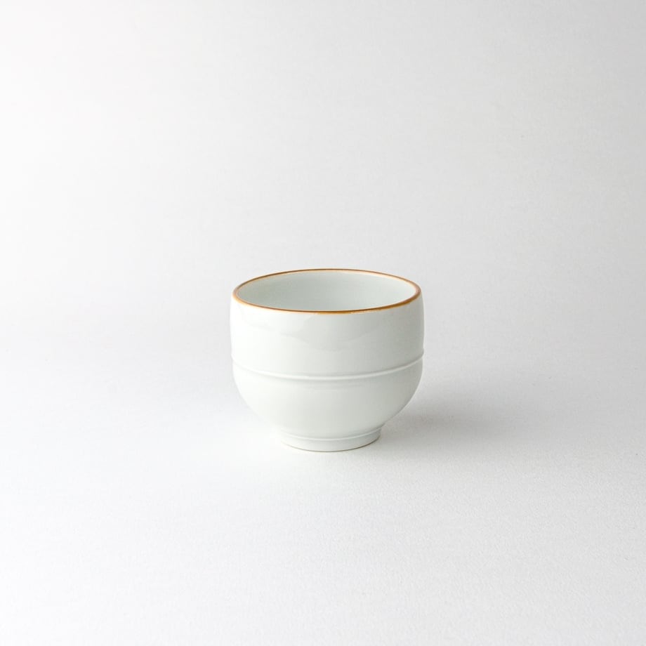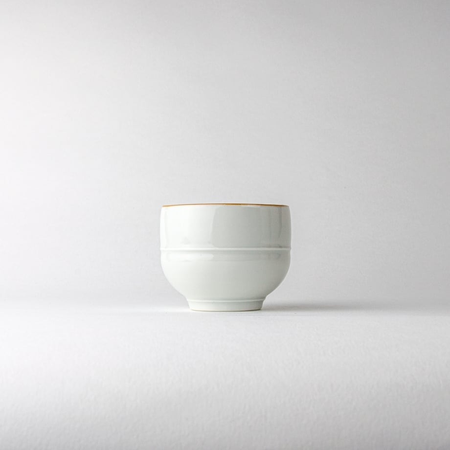 長右衛門窯には、笛吹や祥瑞など中国明時代の染付磁器のデザインから着想を得て作られた器がたくさんあります。この器も同じように明末の名品と呼ばれる茶碗の意匠を参考に小さくし変形させました。手に馴染む心地よい形です。ぐい呑みや、薬味珍味入れとしてもおすすめです。