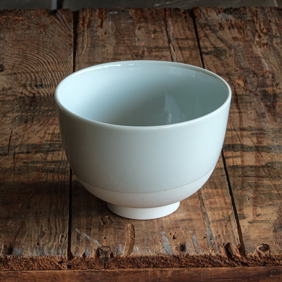 中国の隋や唐の時代の器を参考に作りました。これまでの轆轤まつりで生まれた釉(うわぐすり)と磁器素地のコントラストの美しい器です。丼ぶりや麺鉢、お惣菜やシリアルボウルまで、幅広く使いやすい形になっています。