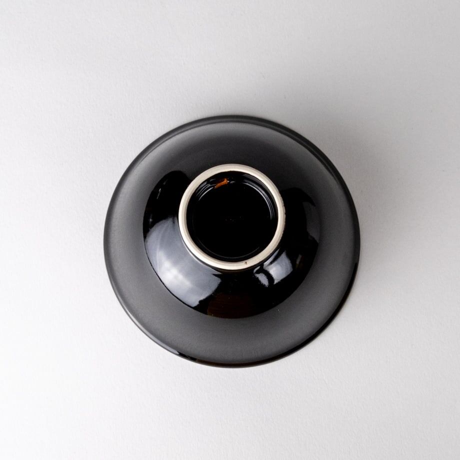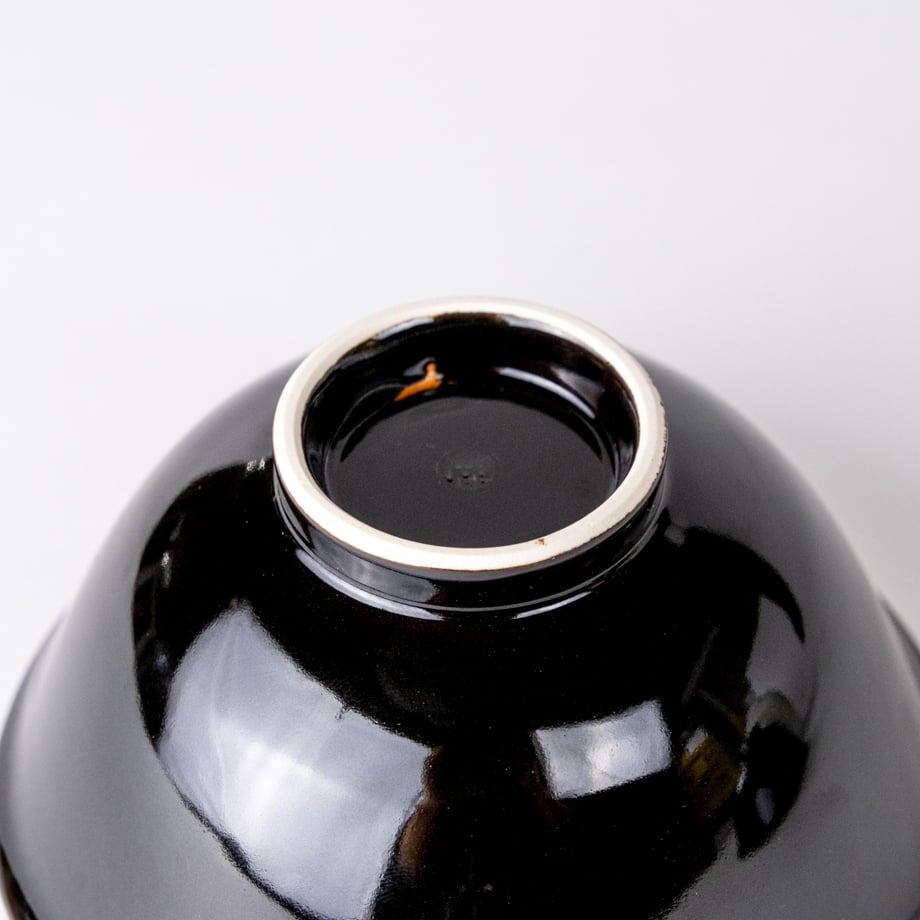 磁器の生産をする上で厄介な存在である鉄を、あえてたくさん添加した釉薬を制作しました。天目とは、鎌倉時代の禅僧が中国の天目山から持ち帰った茶盤に黒い釉薬が施されてあったことがその由来とされています。一般には黒~褐色の鉄釉を天目釉と呼んでいます。
