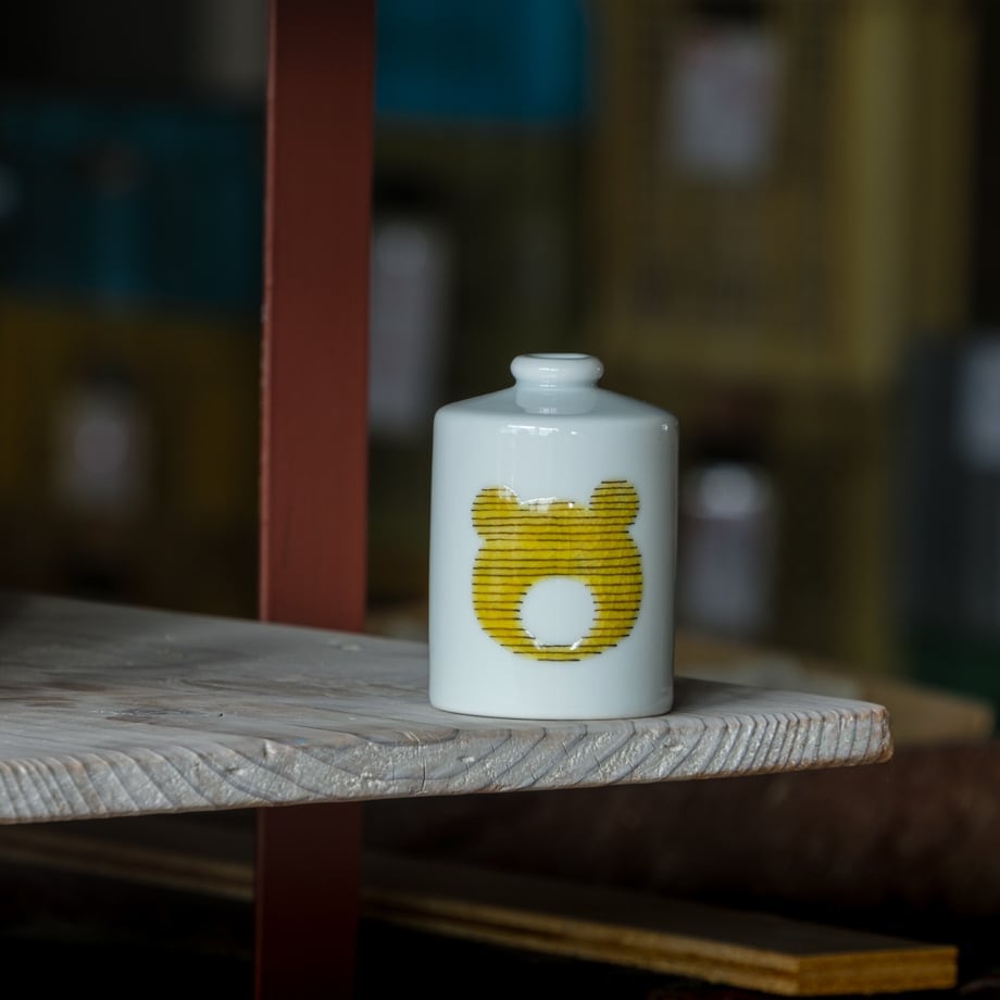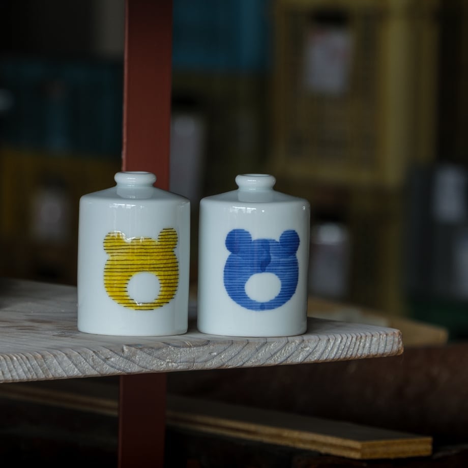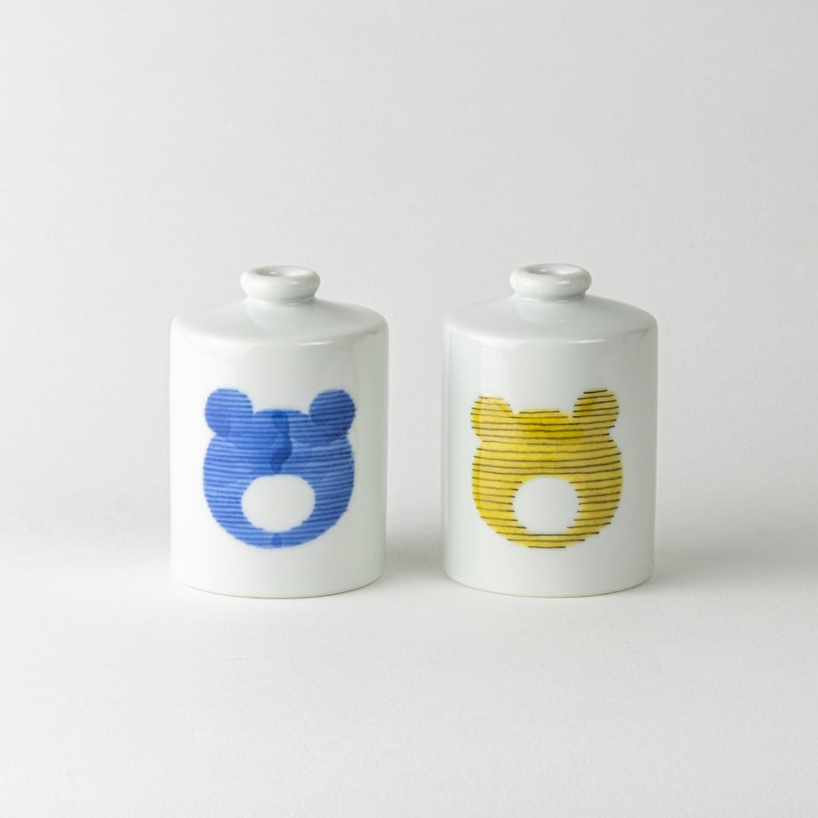 窯まつりで生まれた分銅型一輪挿小・花文を熊まつりバージョンにアレンジ。