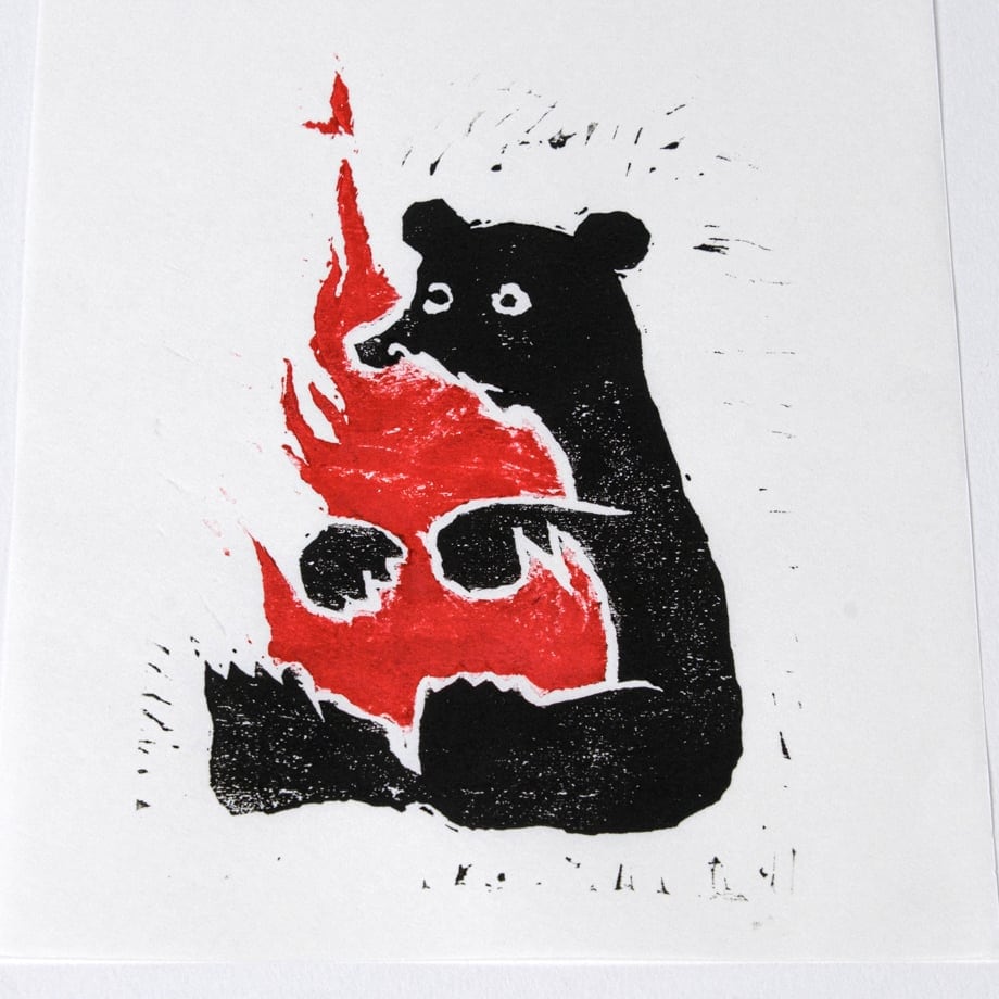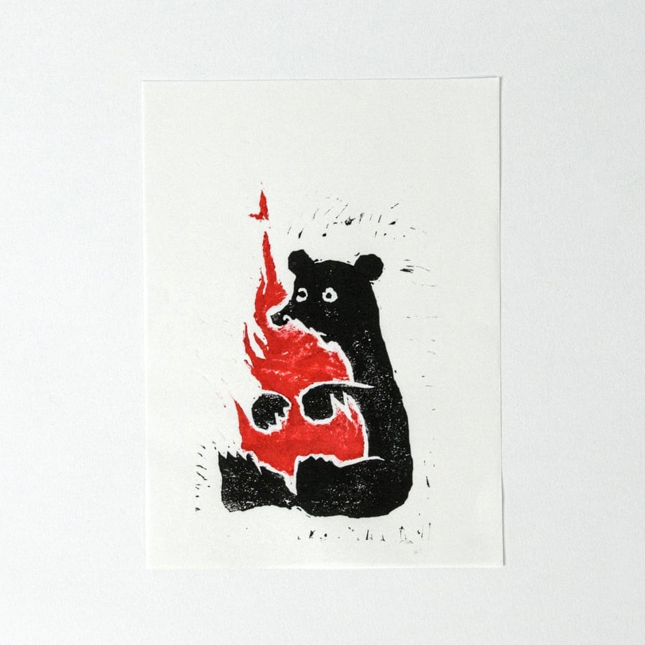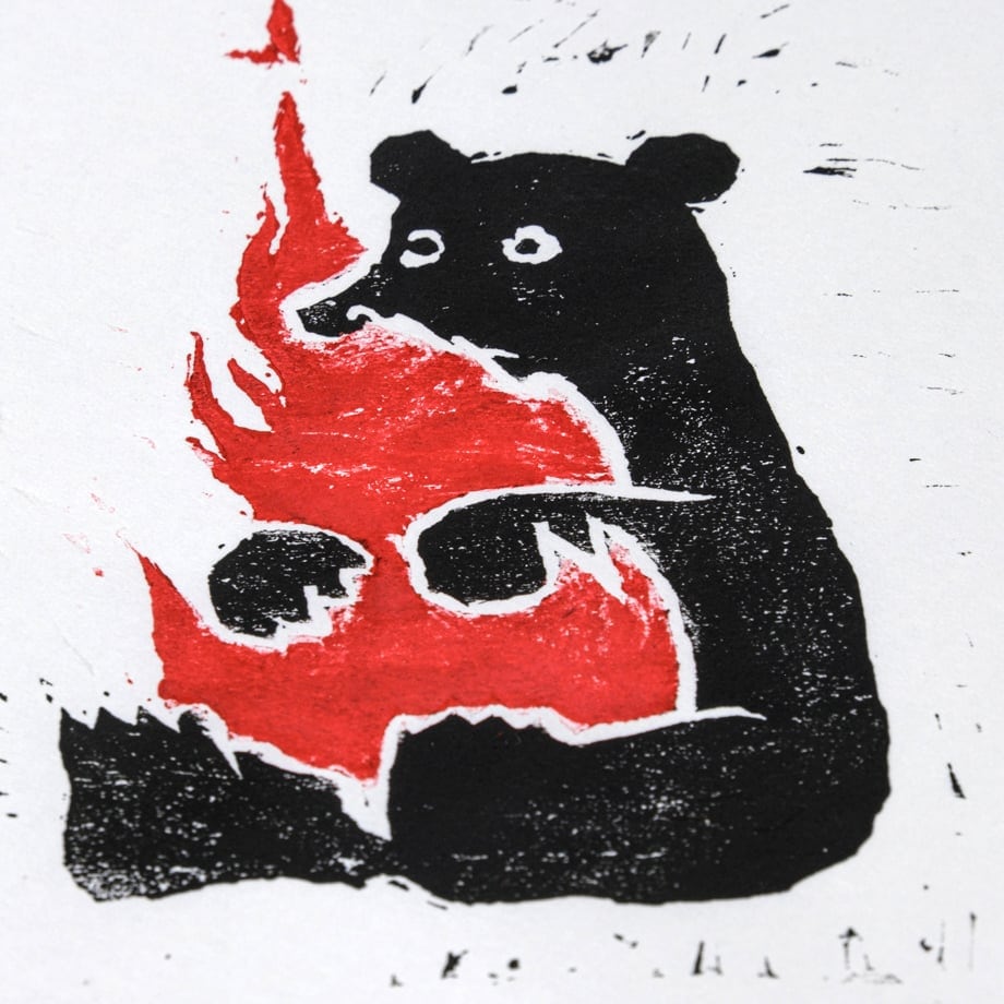 ノベルティーのクマぺディアカードの元になった木版による熊の絵です。