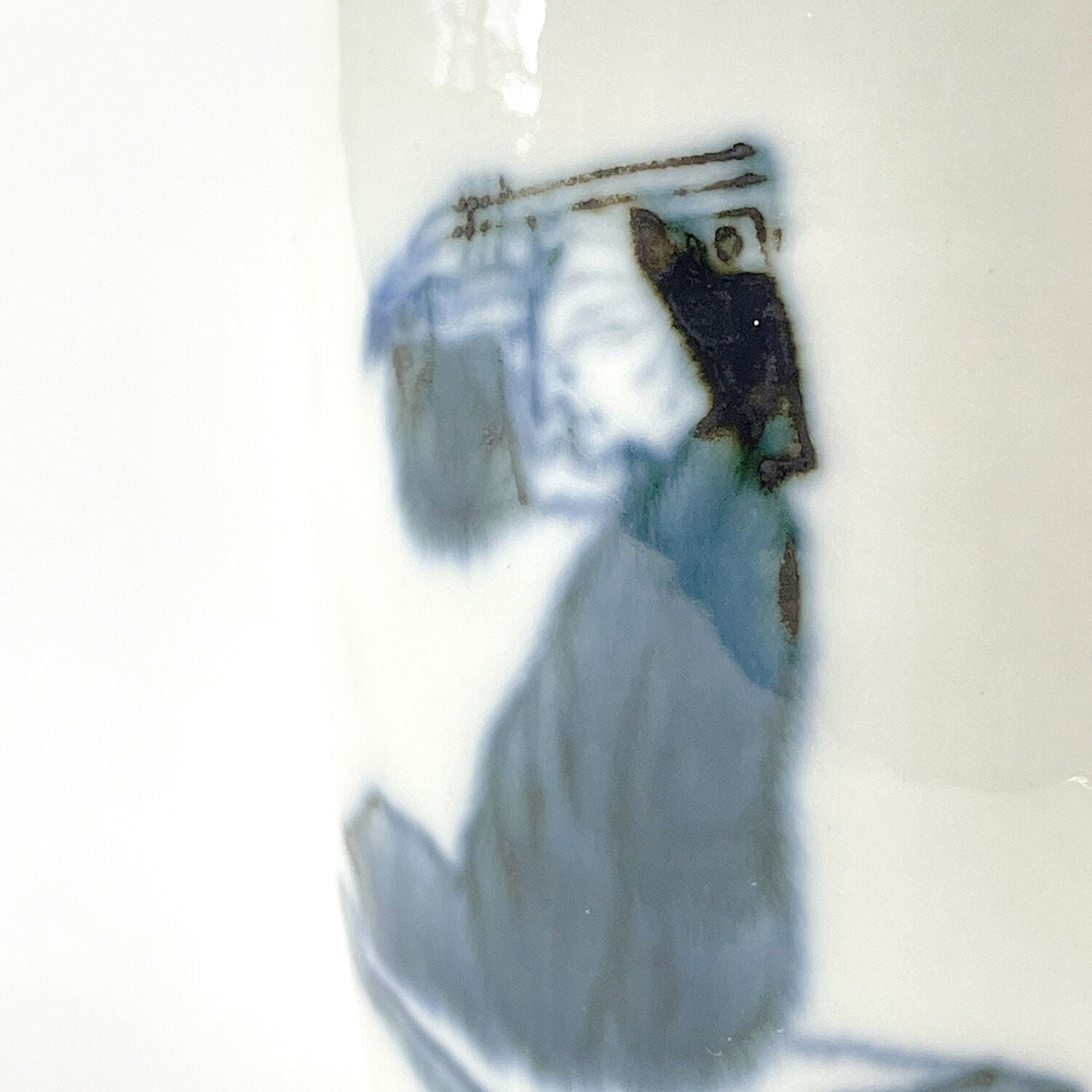 灰釉(かいゆう)はよく融ける性質があります。普段と同じ作り方をした笛吹に、栗灰釉を施すと絵も一緒に流れて“幻影”のような不思議な仕上がりになりました。条件の微妙な違いで滲み方が全く異なった笛吹をお楽しみください。