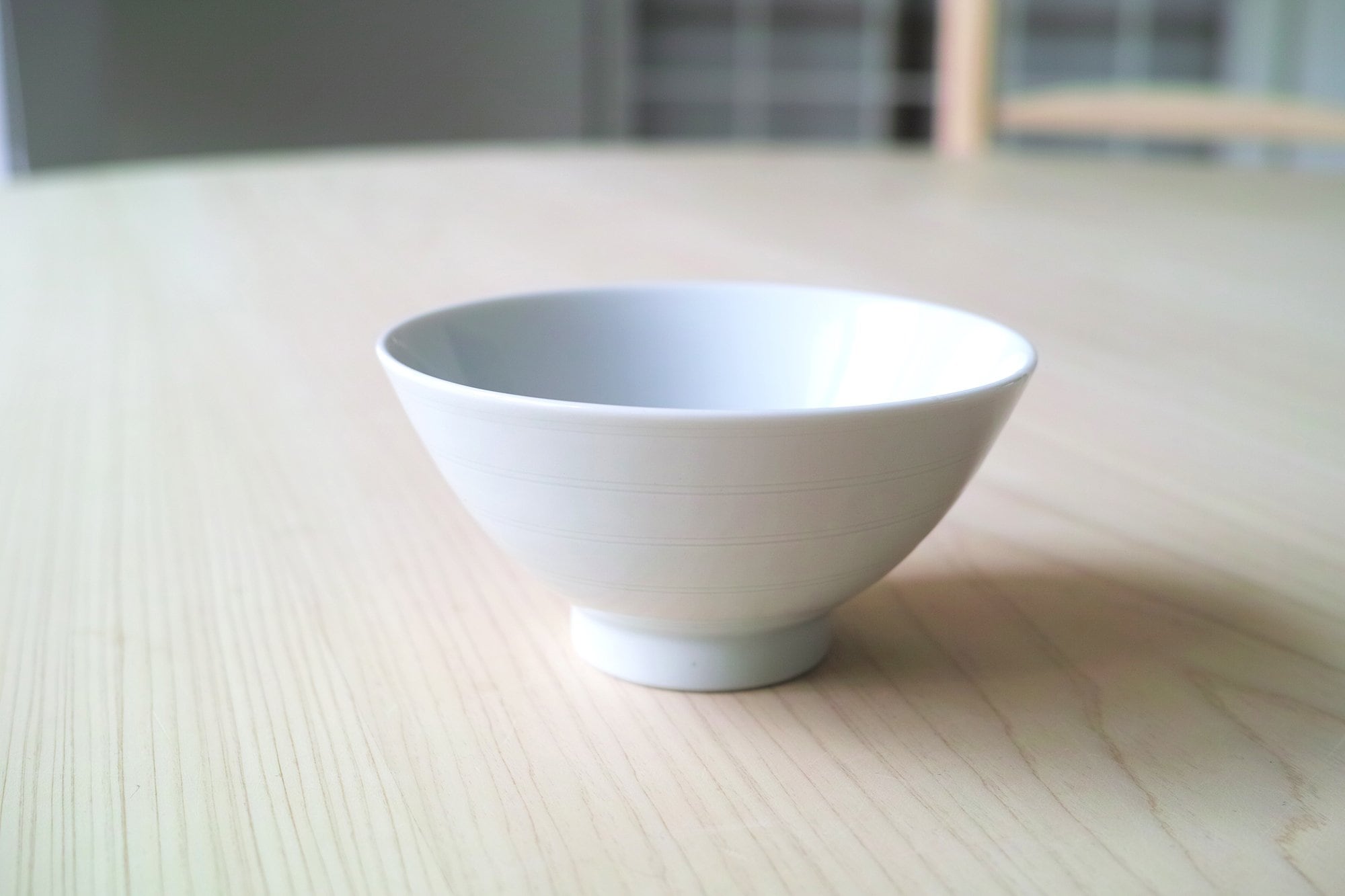 九谷焼の特徴でもある白い素地が生かせるデザインを考えました。轆轤の回転を利用して鉋の筋を螺旋状に入れています。