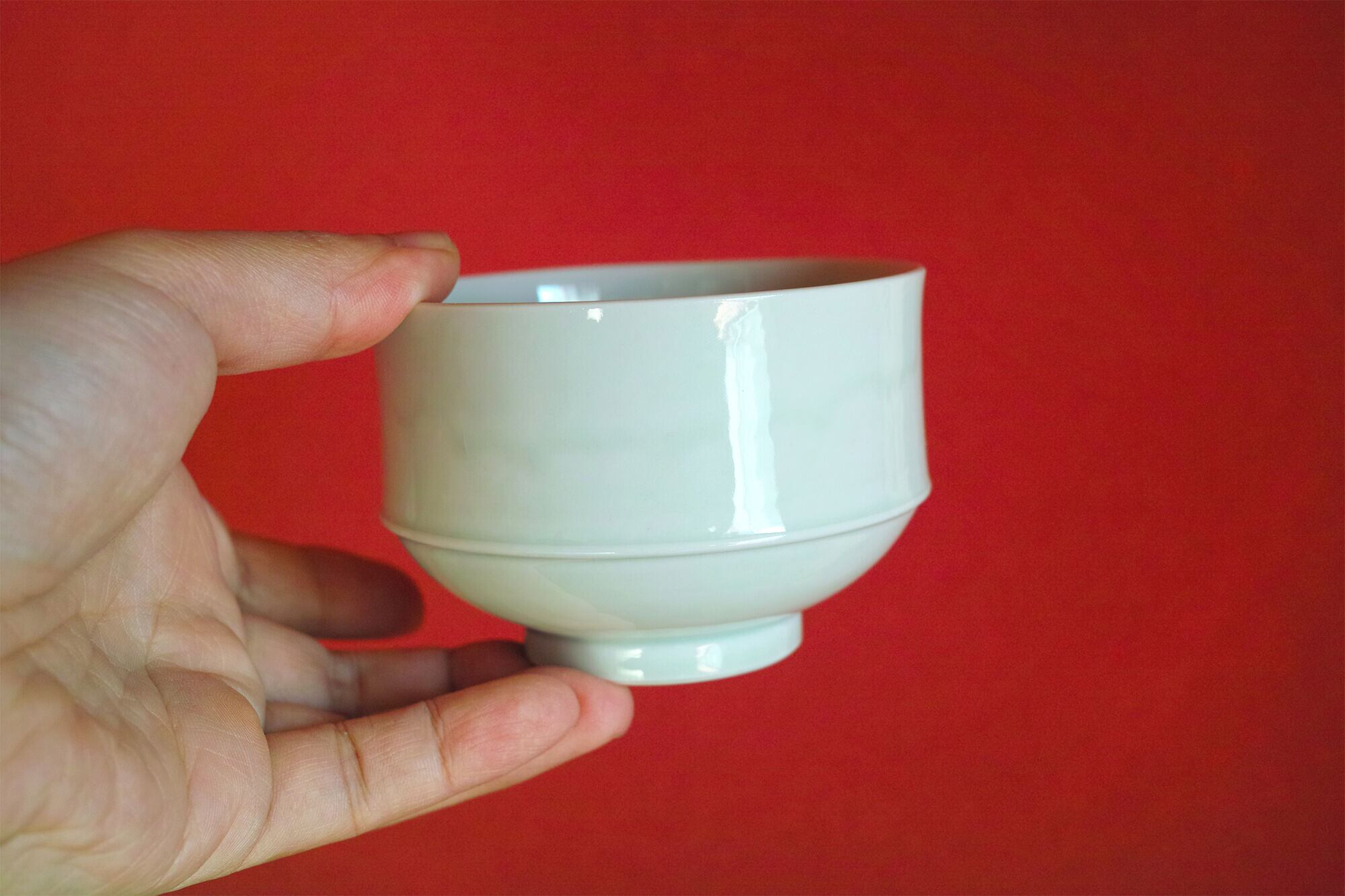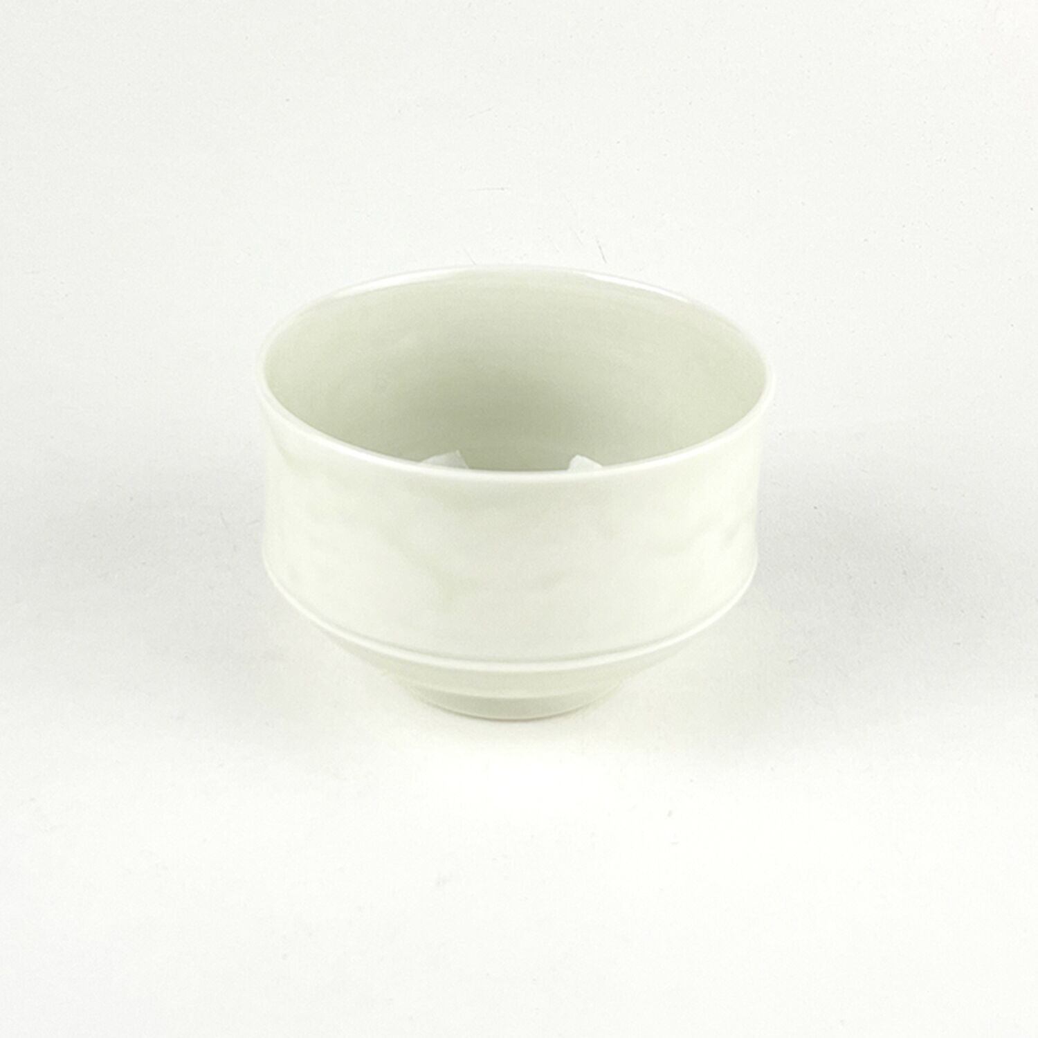 長右衛門窯には、笛吹や祥瑞など中国明時代の染付磁器のデザインから着想を得て作られた器がたくさんあります。この器も同じように明末の名品と呼ばれる茶碗の形を参考に小さく変形させました。スタッキングしやすく、手に馴染む心地よい形です。