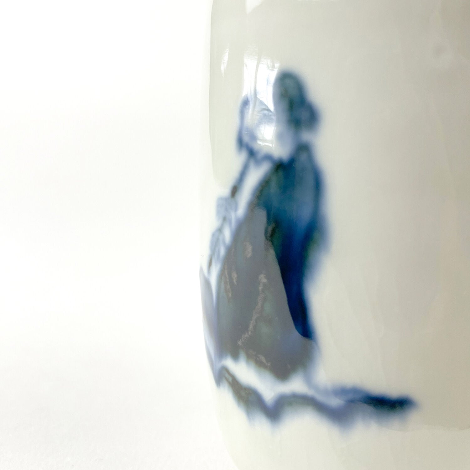 灰釉(かいゆう)はよく融ける性質があります。普段と同じ作り方をした笛吹に、栗灰釉を施すと絵も一緒に流れて“幻影”のような不思議な仕上がりになりました。条件の微妙な違いで滲み方が全く異なった笛吹をお楽しみください。