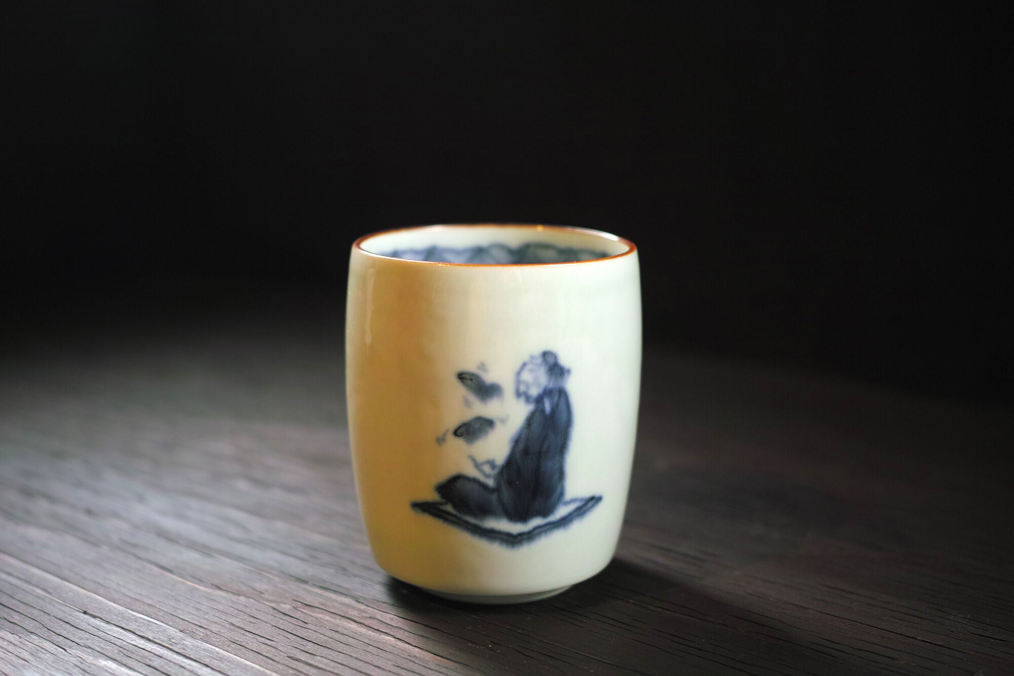 灰釉(かいゆう)はよく融ける性質があります。普段と同じ作り方をした笛吹に、栗灰釉を施すと絵も一緒に流れて“幻影”のような不思議な仕上がりになりました。条件の微妙な違いで滲み方が全く異なった笛吹をお楽しみください。