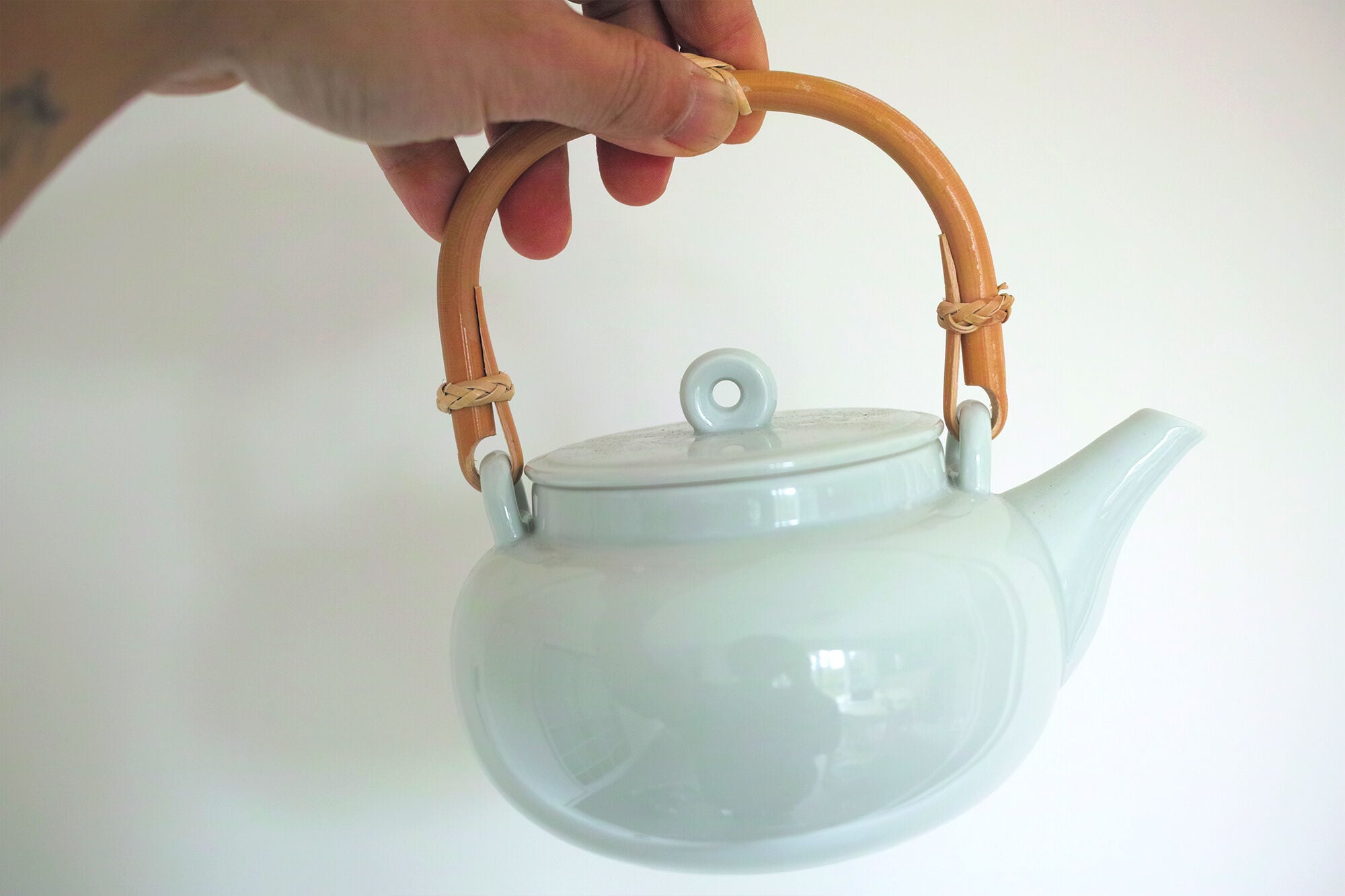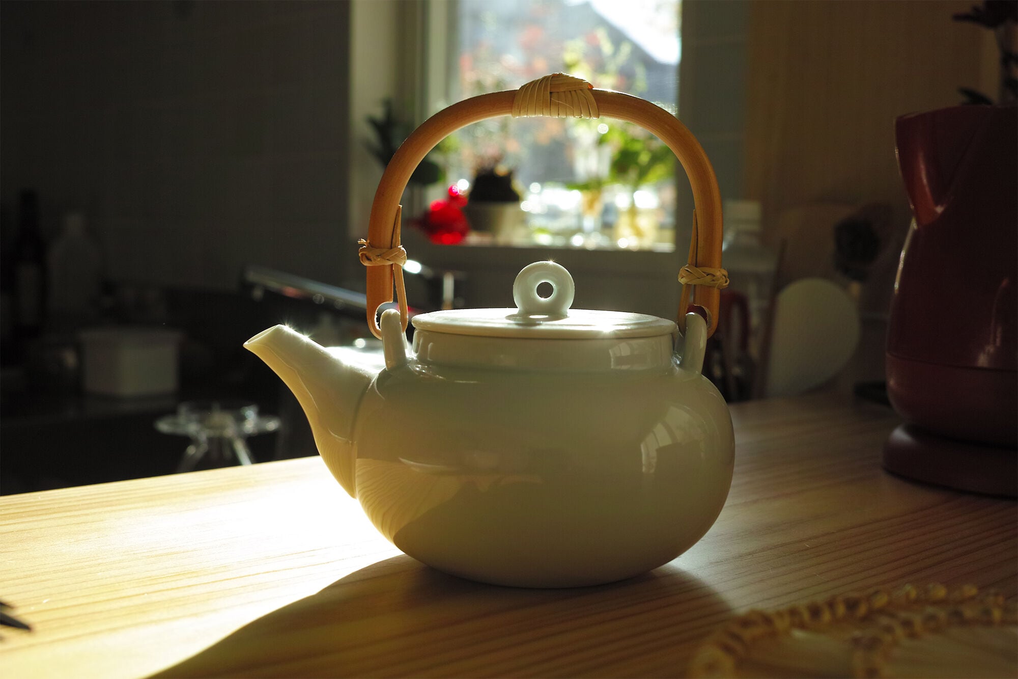 土瓶のような形状の急須で、お茶がたっぷりと入ります。ドーナツ状の蓋のつまみが特徴的です。