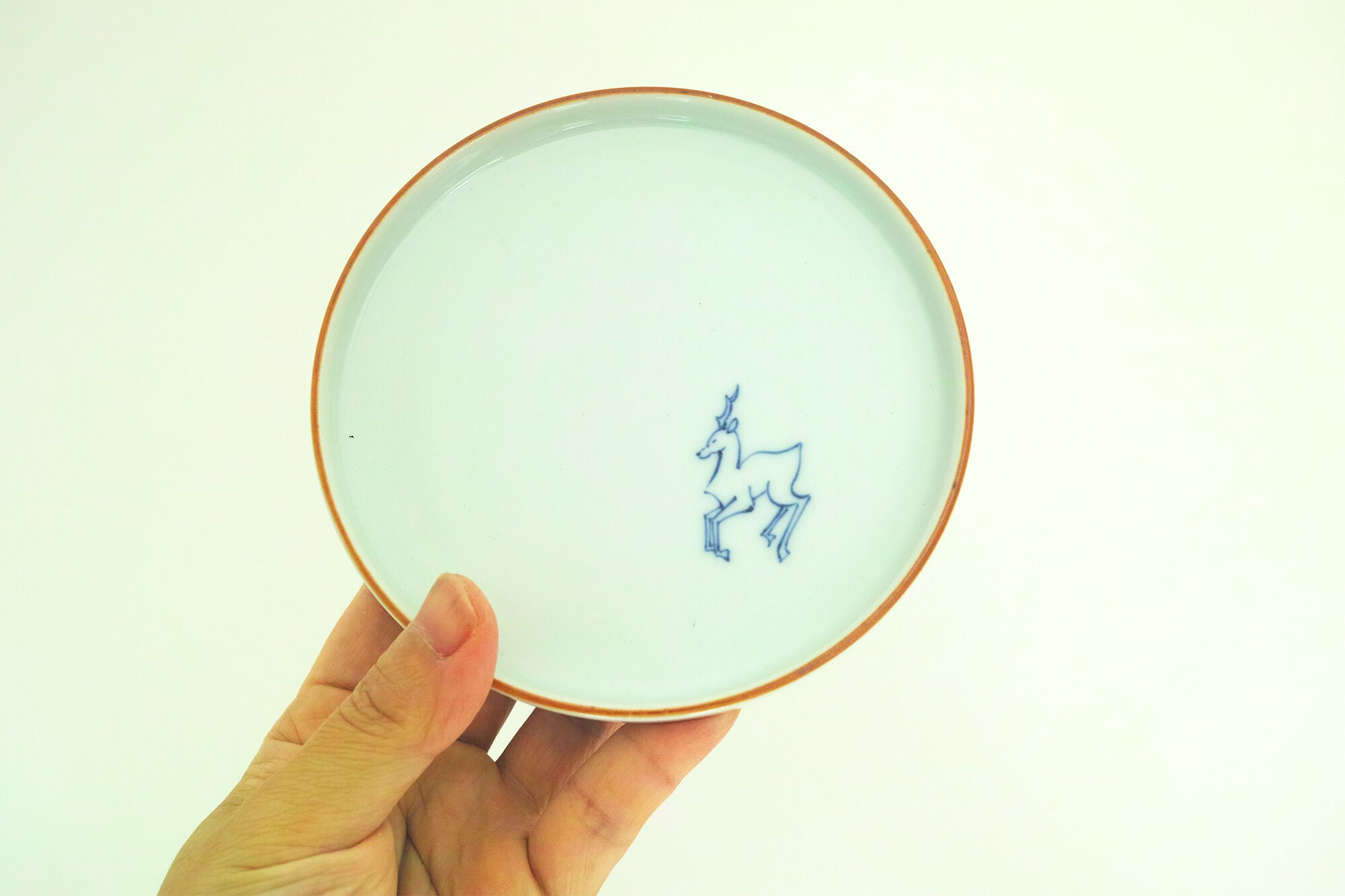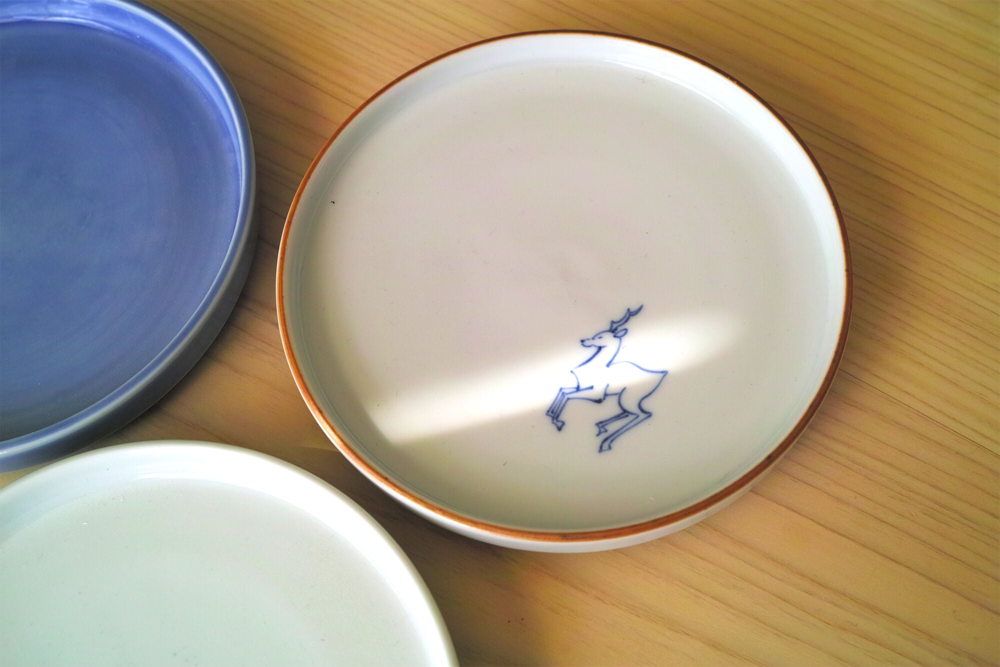 料理人に人気のあるフラットな皿です。「轆轤」の「轆」という字には「鹿」が入っており、ちょうど10月は鹿の鳴く季節でもあるので、轆轤まつりのビジュアルイメージには鹿の挿絵を描いています。